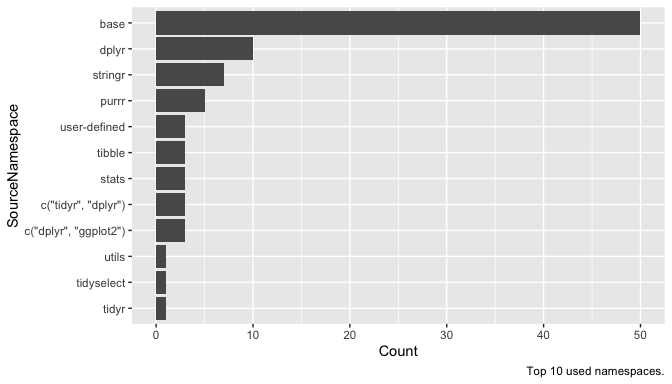 labs(caption = "Top 10 used namespaces.")